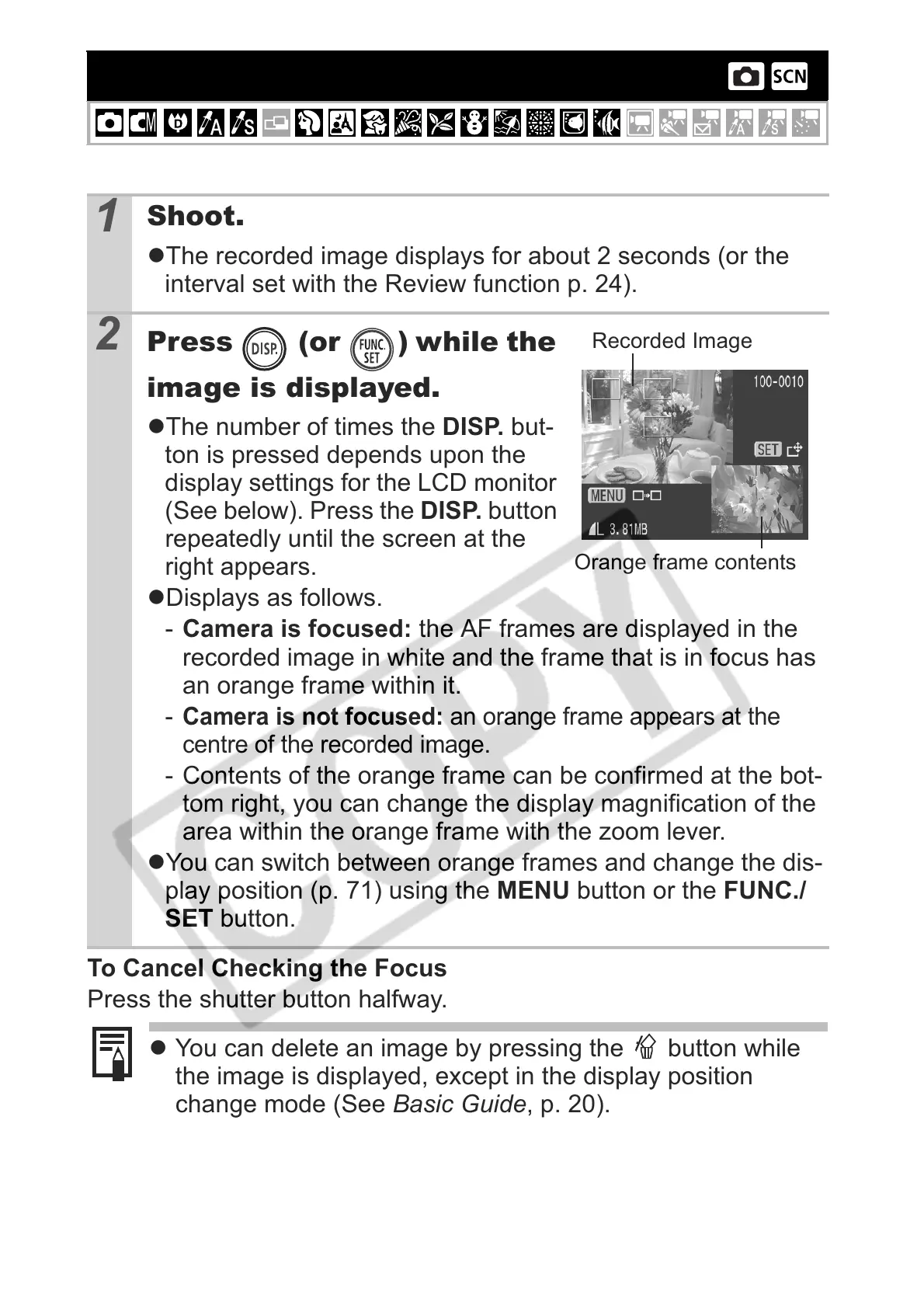change mode (See Basic Guide, p. 20).