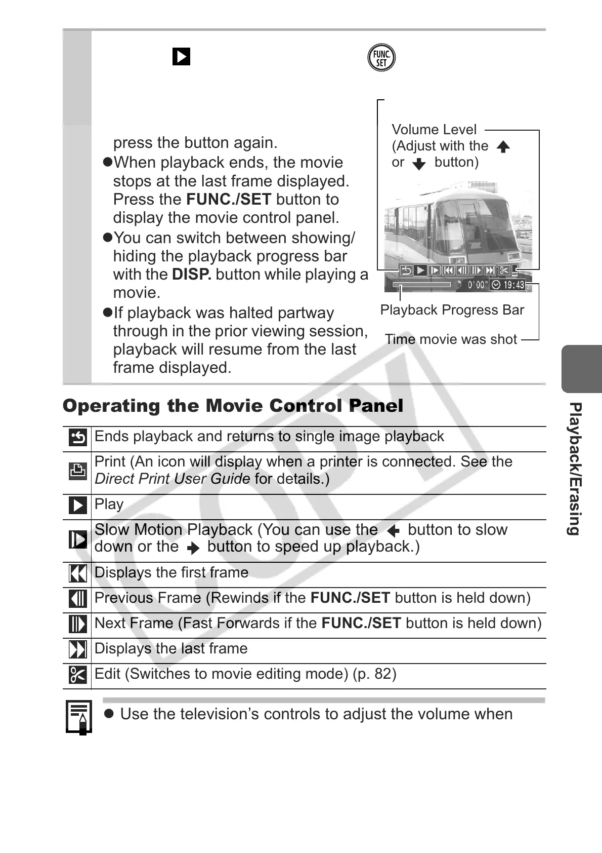 Previous Frame (Rewinds if the FUNC./SET button is held down)
