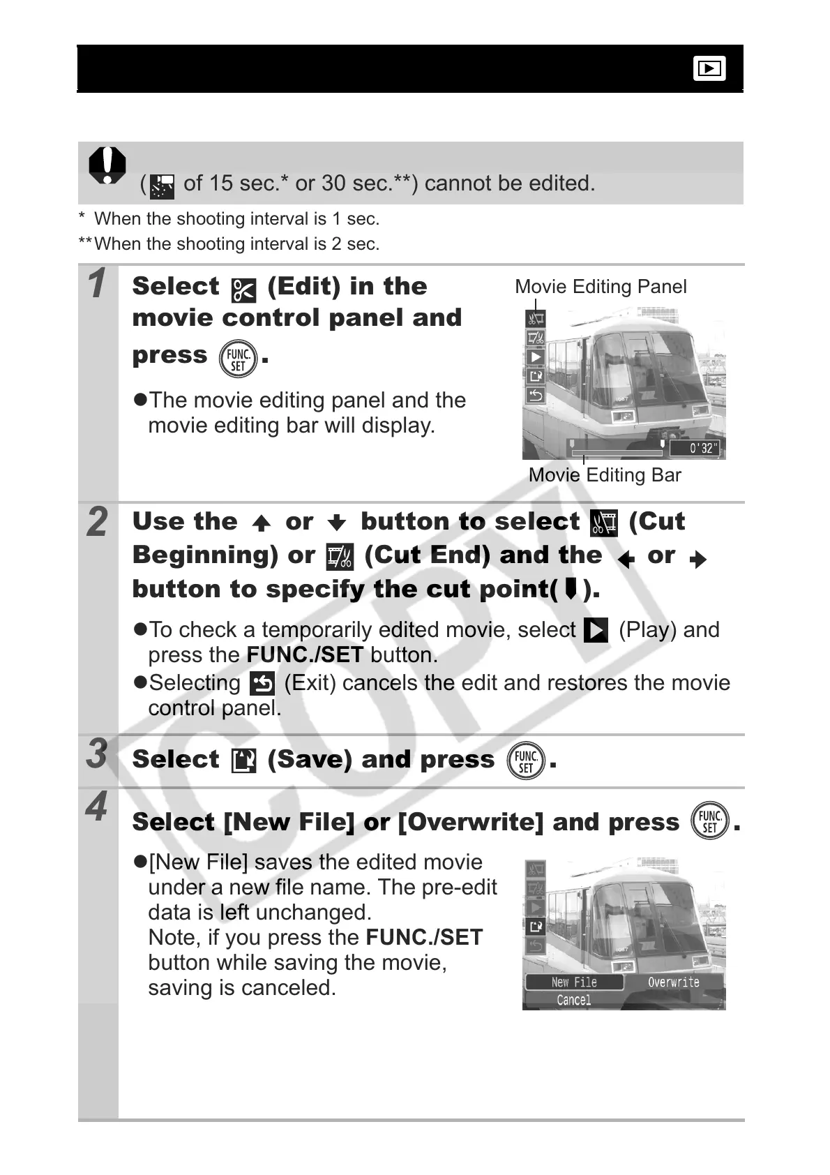 ( of 15 sec.* or 30 sec.**) cannot be edited.