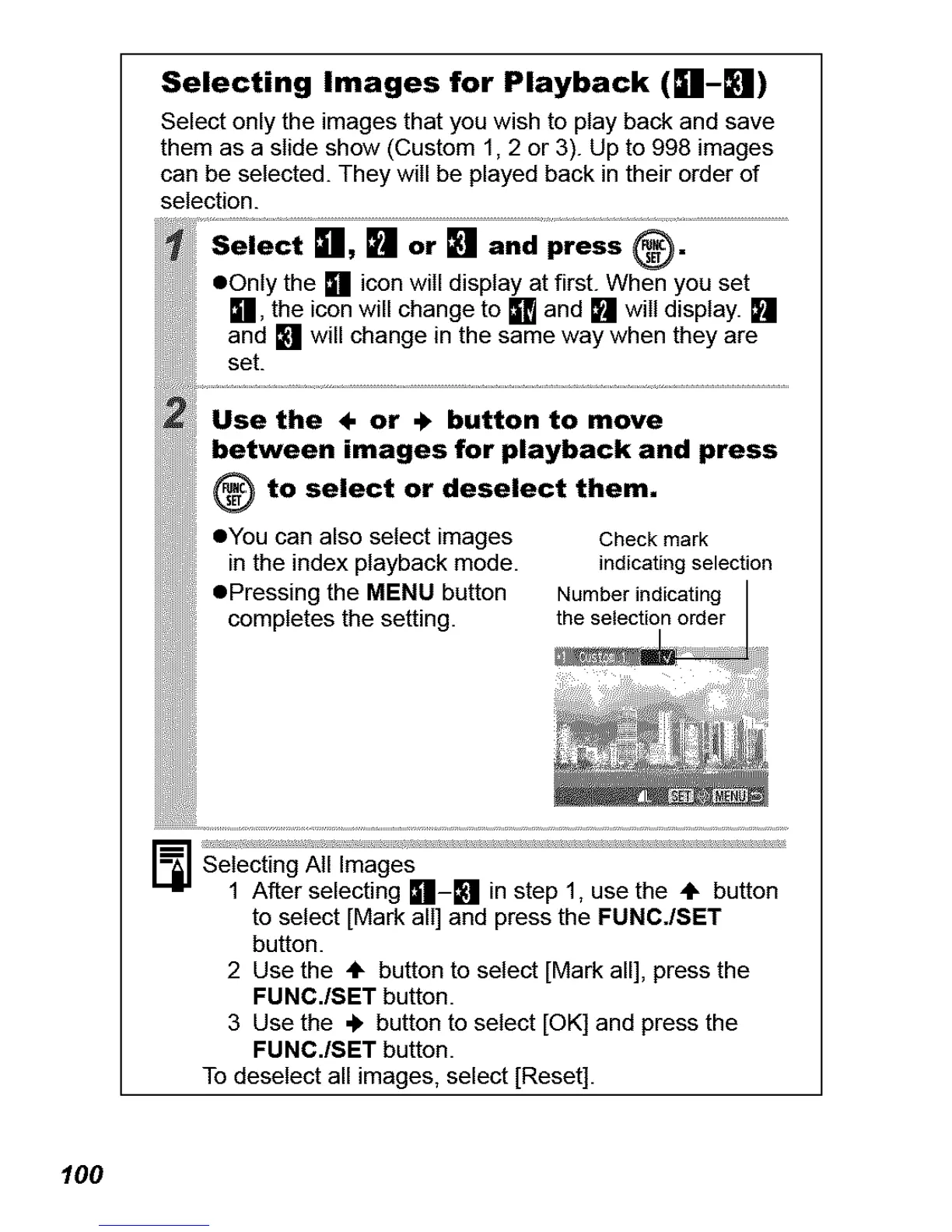 to select [Mark all] and press the FUNC./SET