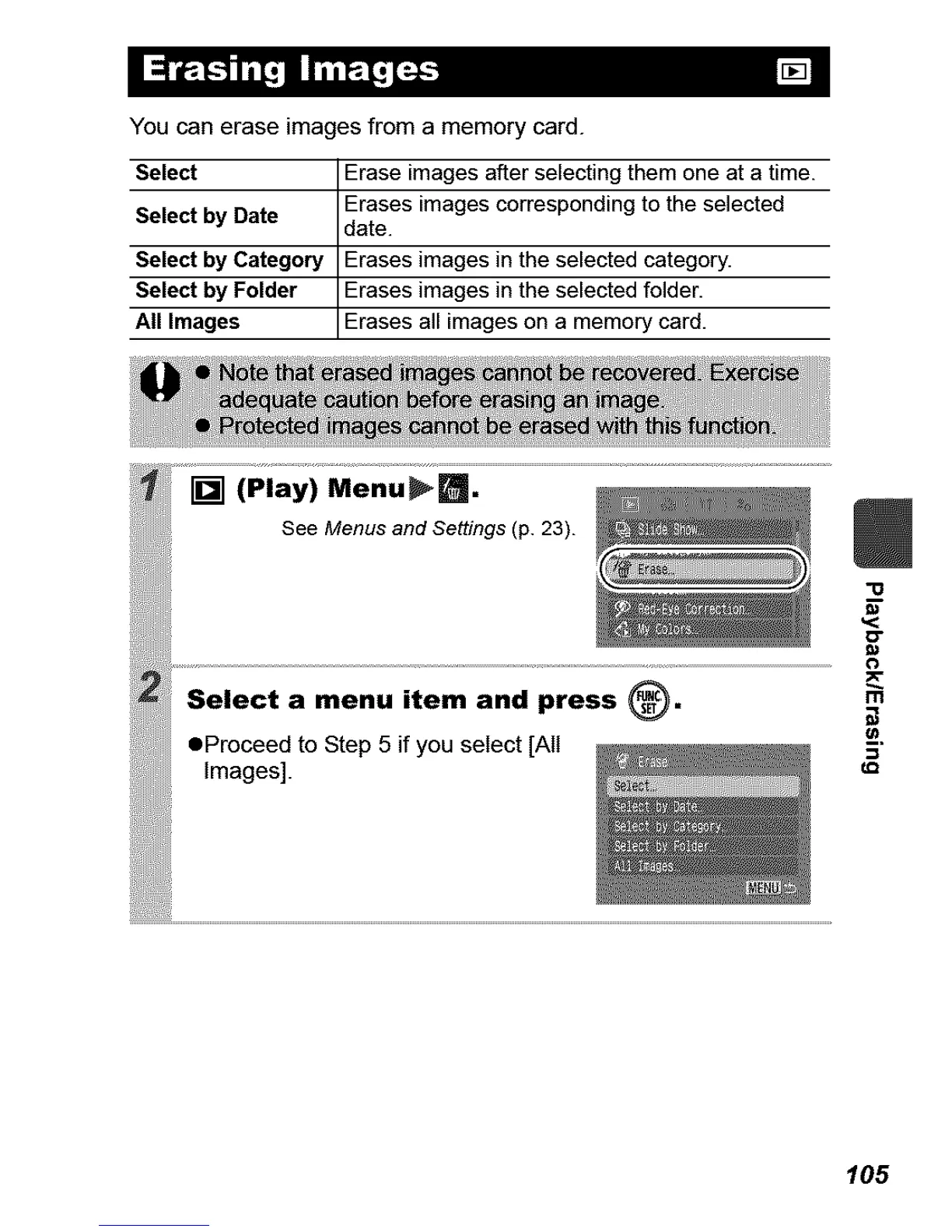 Select by Category Erases images in the selected category.