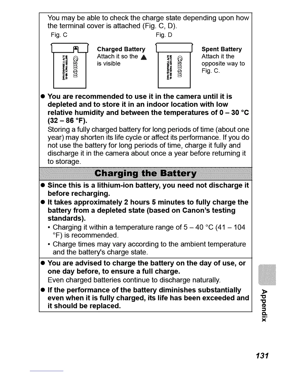 battery from a depleted state (based on Canon's testing