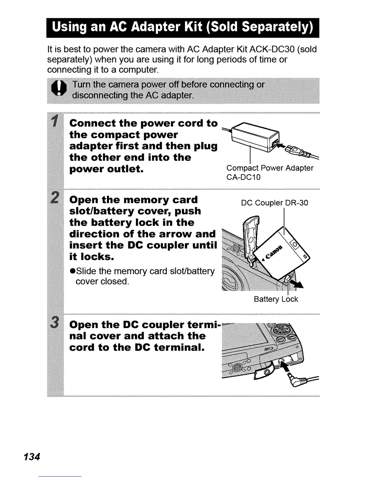 It is best to power the camera with AC Adapter Kit ACK-DC30 (sold