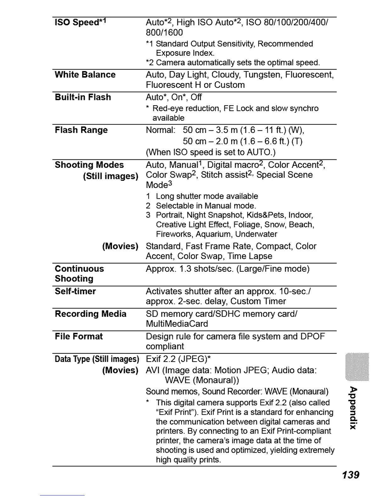 * This digital camera supports Exif 2.2 (also called