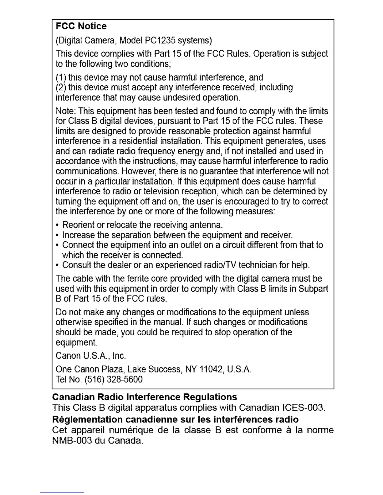 This Class B digital apparatus complies with Canadian ICES-gO3.