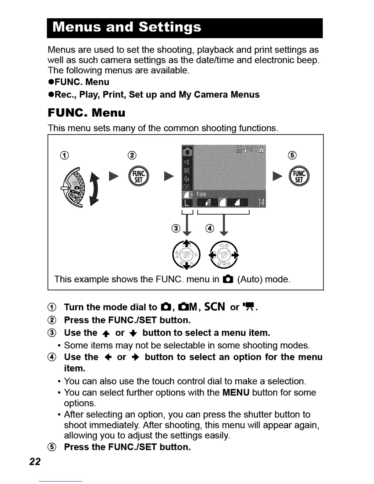 This example shows the FUNC. menu in 0 (Auto) mode.