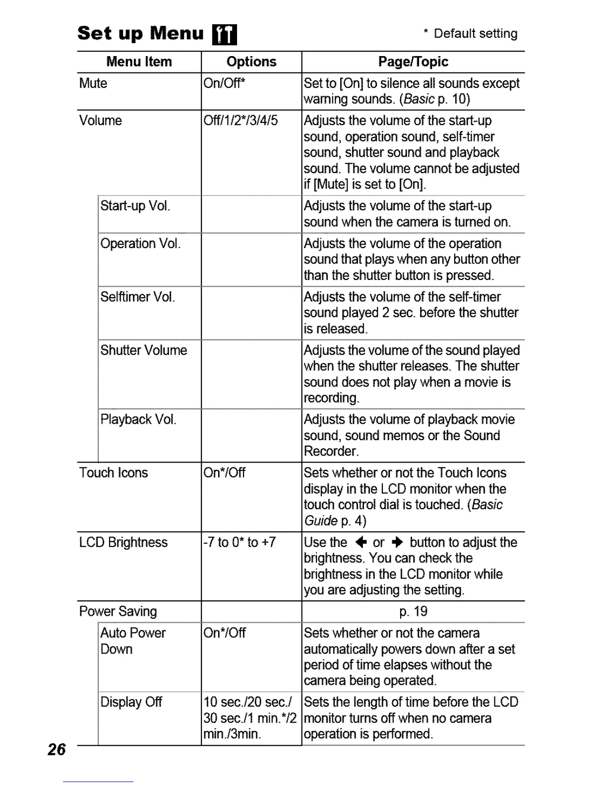 Display Off 10 sec./2Osec./ Setsthe lengthof time beforethe LCD