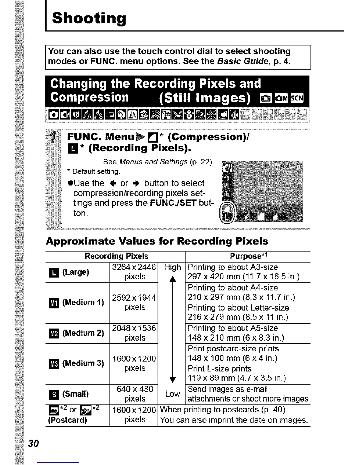 modes or FUNC. menu opt ons. See the Basic Guide, p. 4.