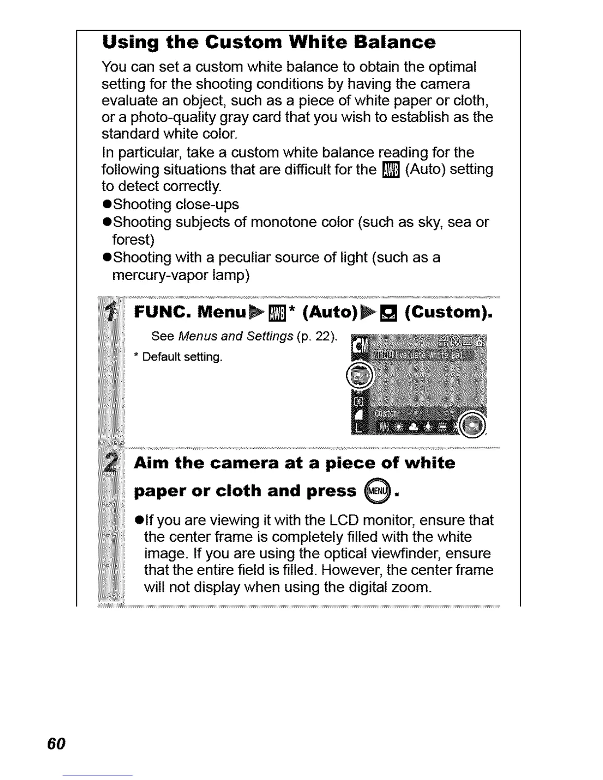 FUNC. Menu_[]* (Auto)_[] (Custom).