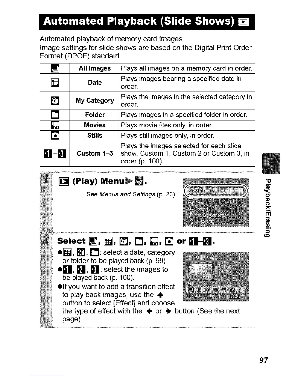 [] All Images Plays all images on a memory card in order.