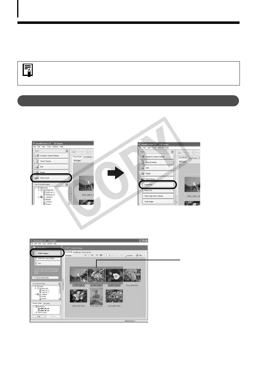 TherearethreemethodsforusingZoomBrowserEXtoprintimages:[PhotoPrint],[IndexPrint]