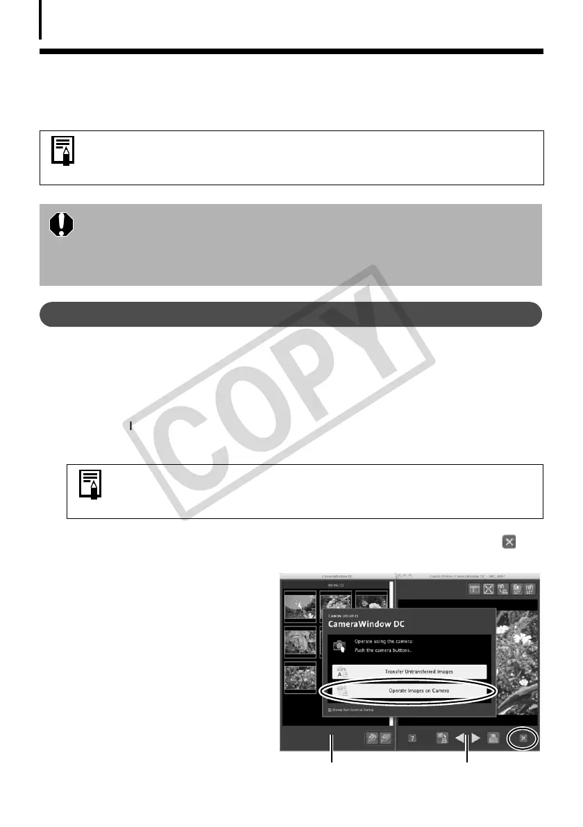 2 If CameraWindow appears, click [Operate Images on Camera] followed by in