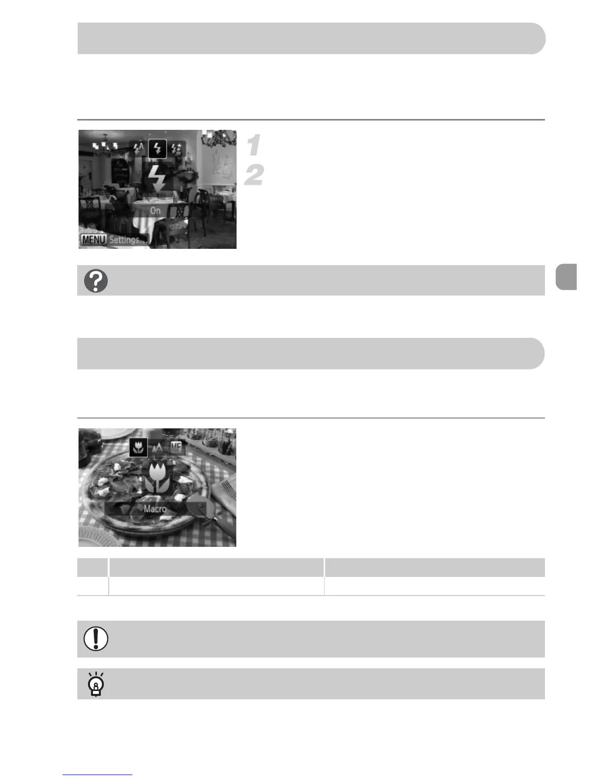 e Approx. 1 – 50 cm (0.4 in. – 1.6 ft.)* Only focuses on close subjects.
