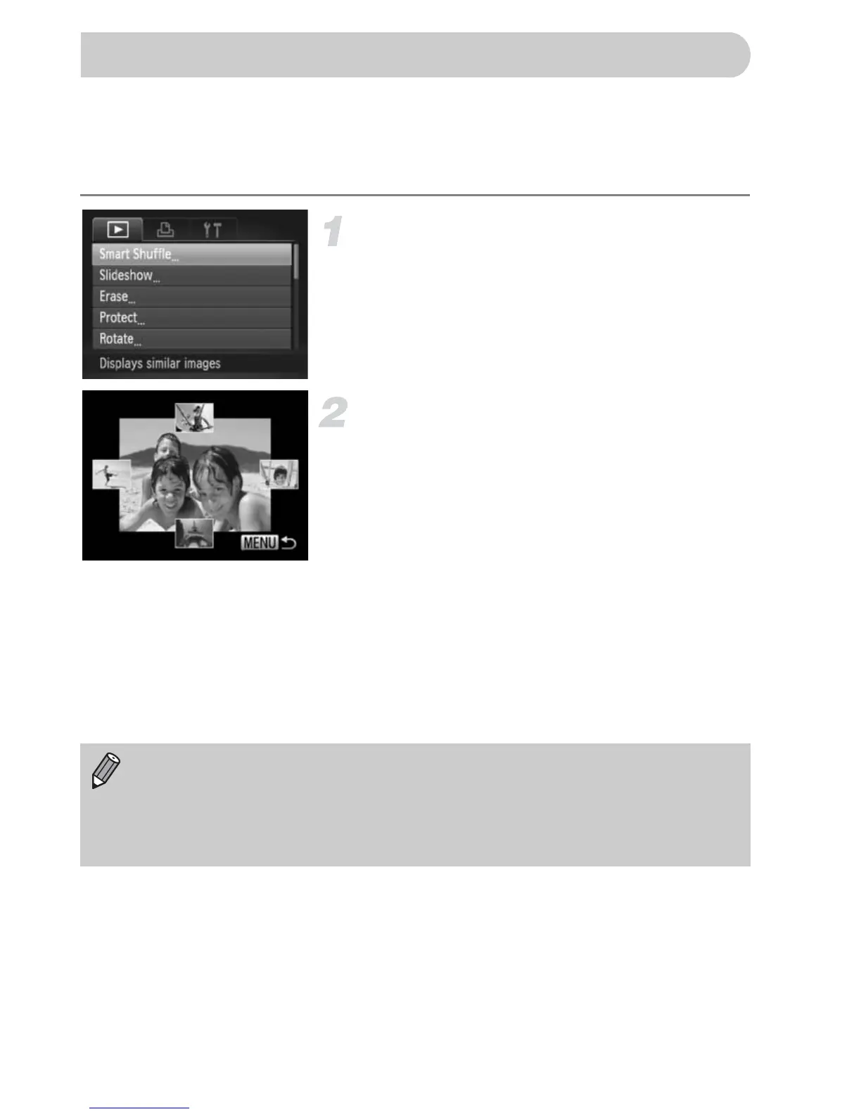 • Only still images shot with this camera will play back in Smart Shuffle.