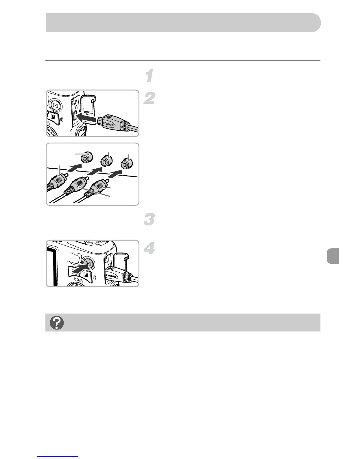Using the supplied stereo AV cable (p. 2), you can connect the camera to a