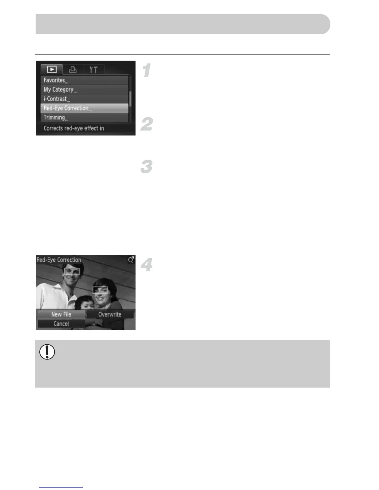 • When [Overwrite] in Step 4 is chosen, the uncorrected image is