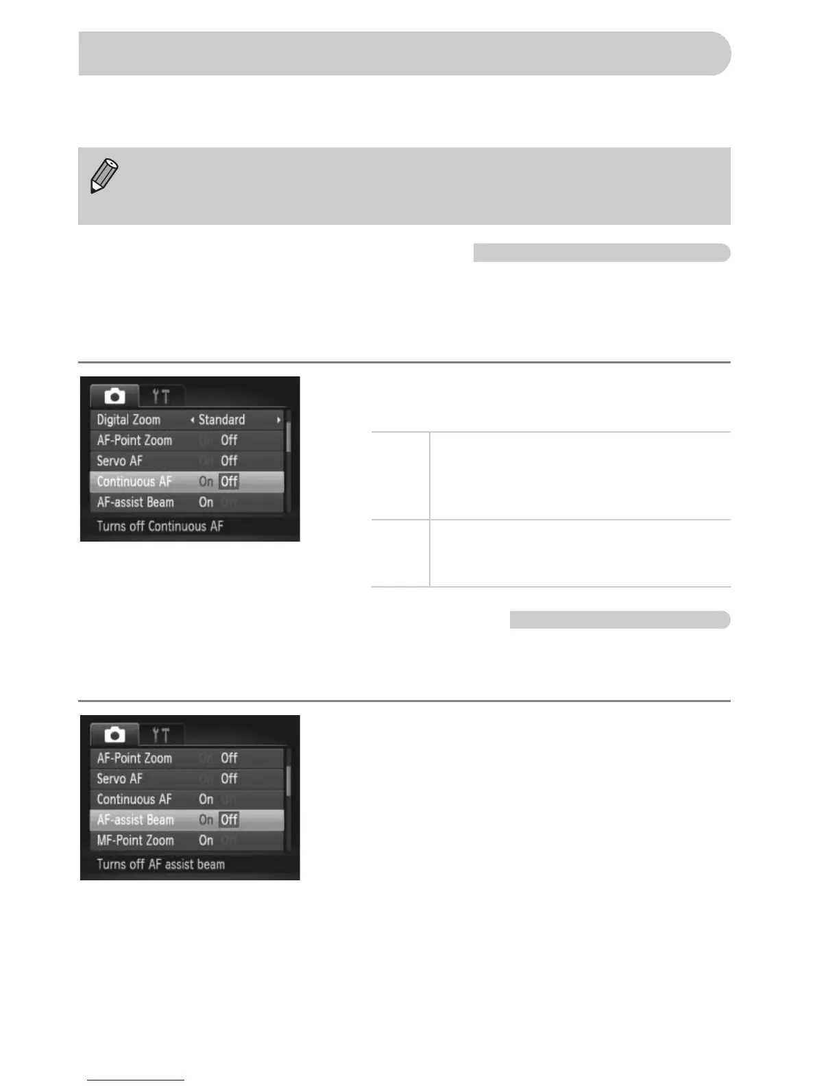 Turning off the AF Assist Beam