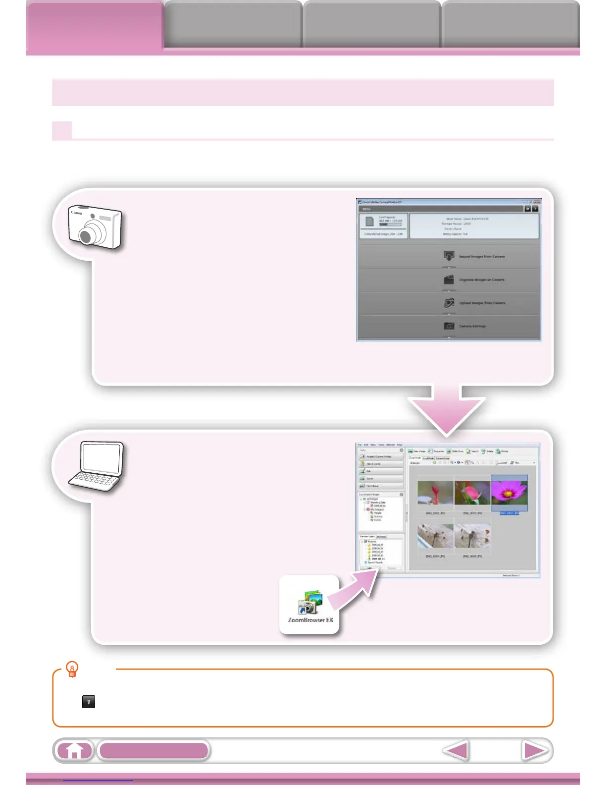 The (Help)buttonorHelpmenuisavailableinmostCameraWindowandZoomBrowserEXwindows.It