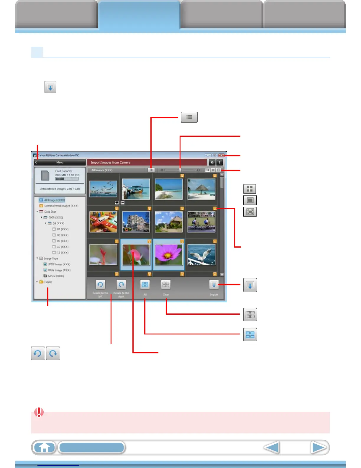 Thisscreenappearswhenyouclick[ImportImagesfromCamera]ontheMenuscreen,