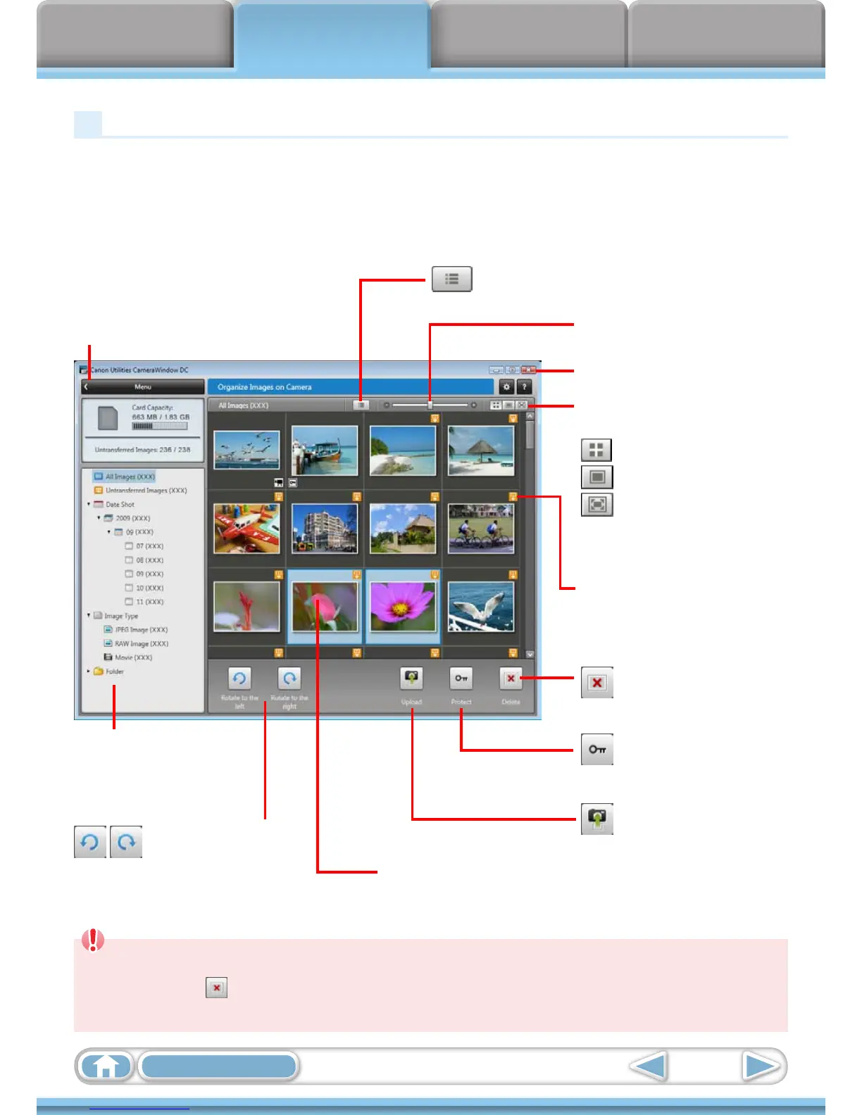 Thisscreenappearswhenyouclick[OrganizeImagesonCamera]ontheMenuscreen,