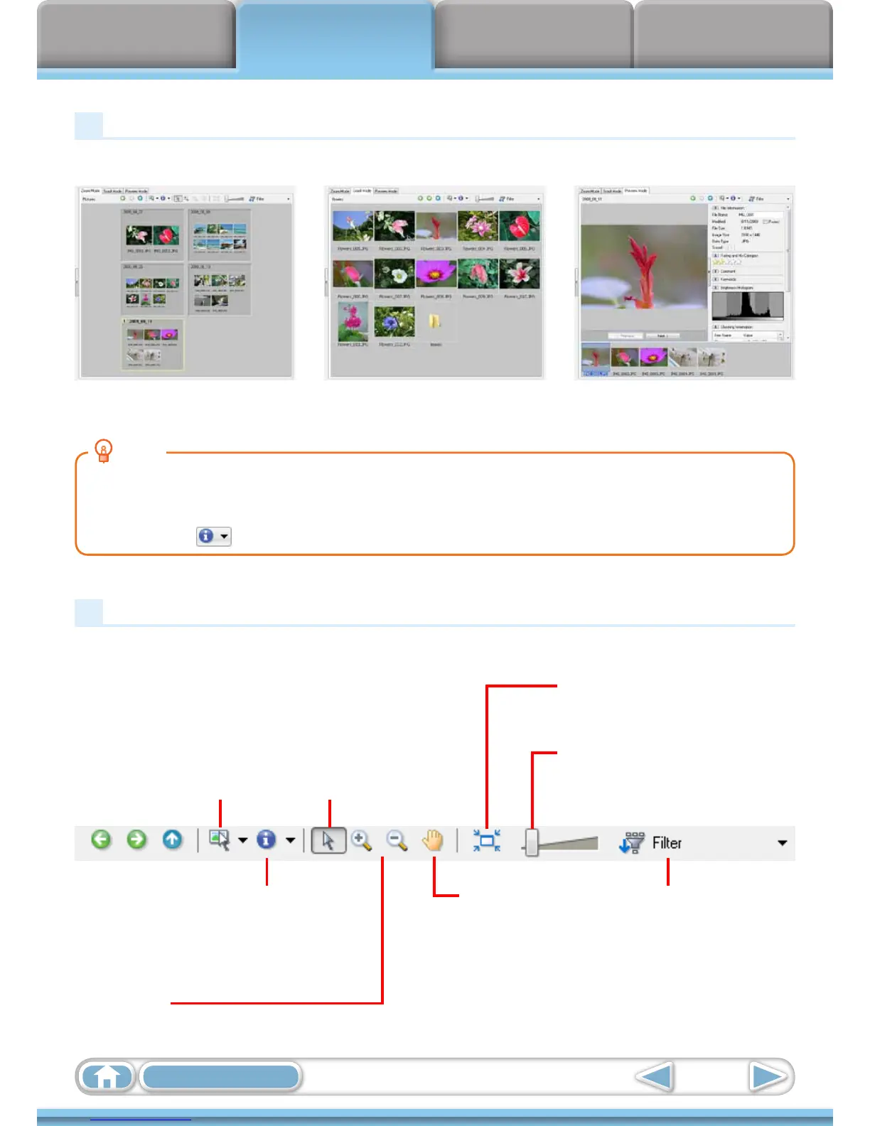 Inzoommodeorscrollmode,positioningthemousepointeroverathumbnailcausestheimageto