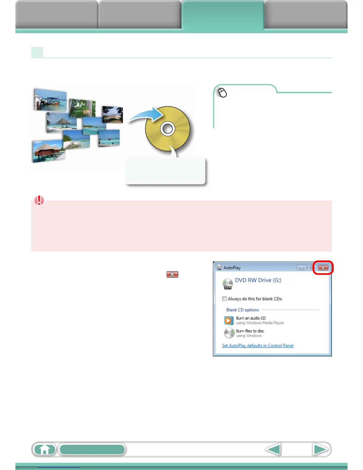 anewCD-R/RWdiscisplacedinthedrive,click ([Cancel]
