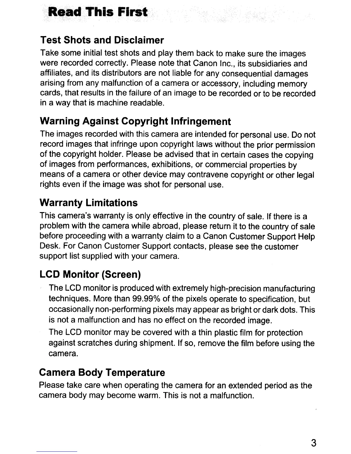 before proceeding with a warranty claim to a Canon Customer Support Help