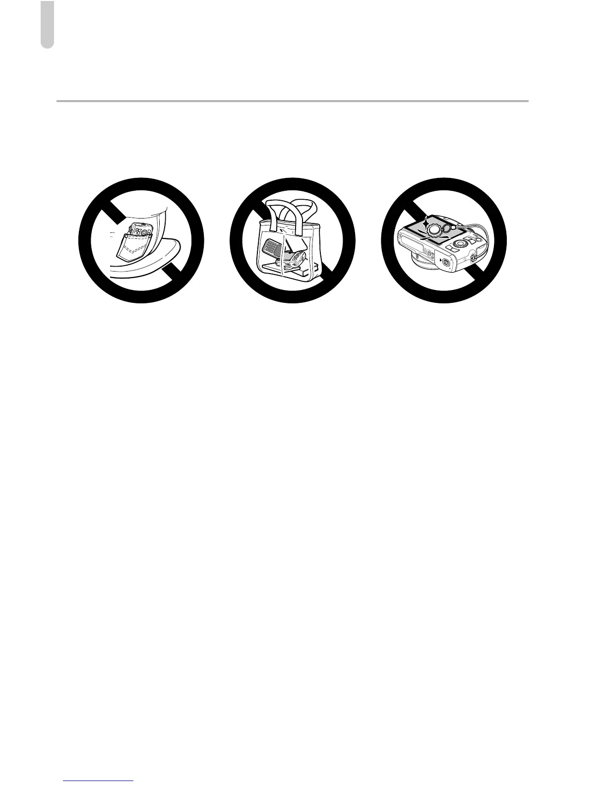 When putting the camera in your bag, ensure that hard objects do not come into