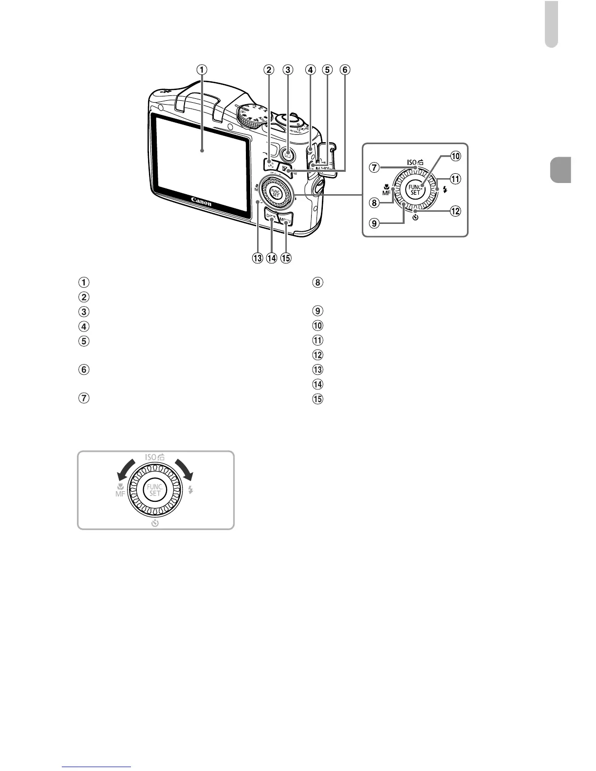1 (Playback) Button (pp. 26, 109)