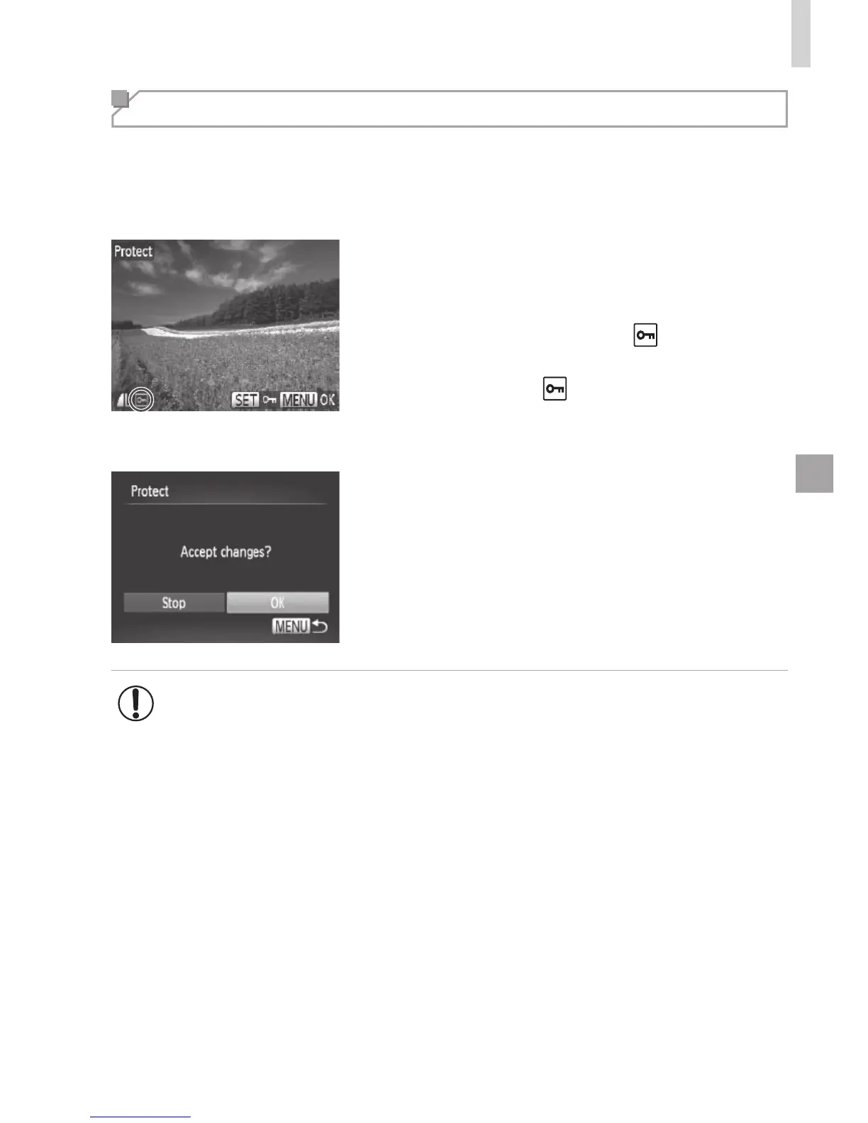 • ImageswillnotbeprotectedifyouswitchtoShootingmodeorturn