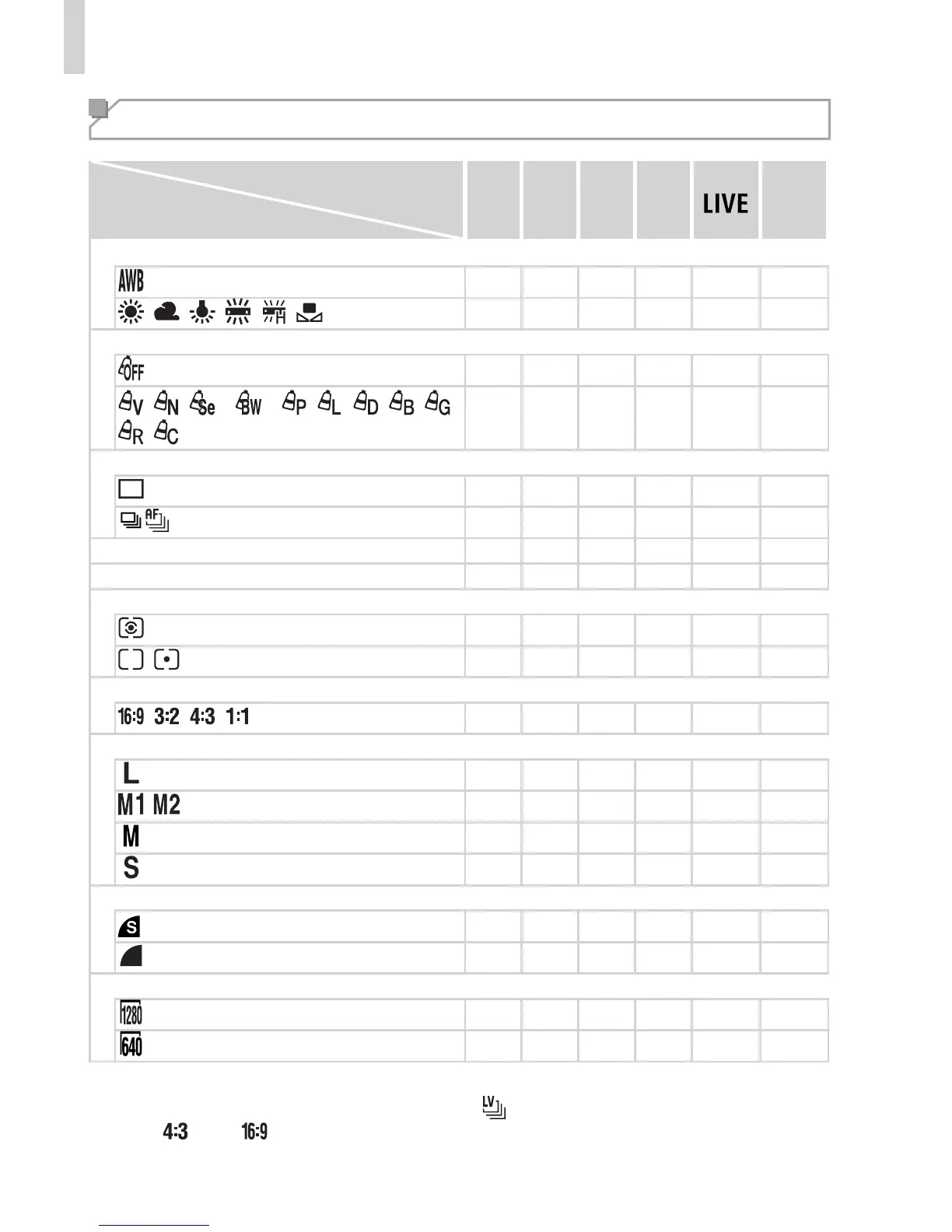 *1Whitebalanceisnotavailable.*2Setinarangeof1–5:contrast,sharpness,color