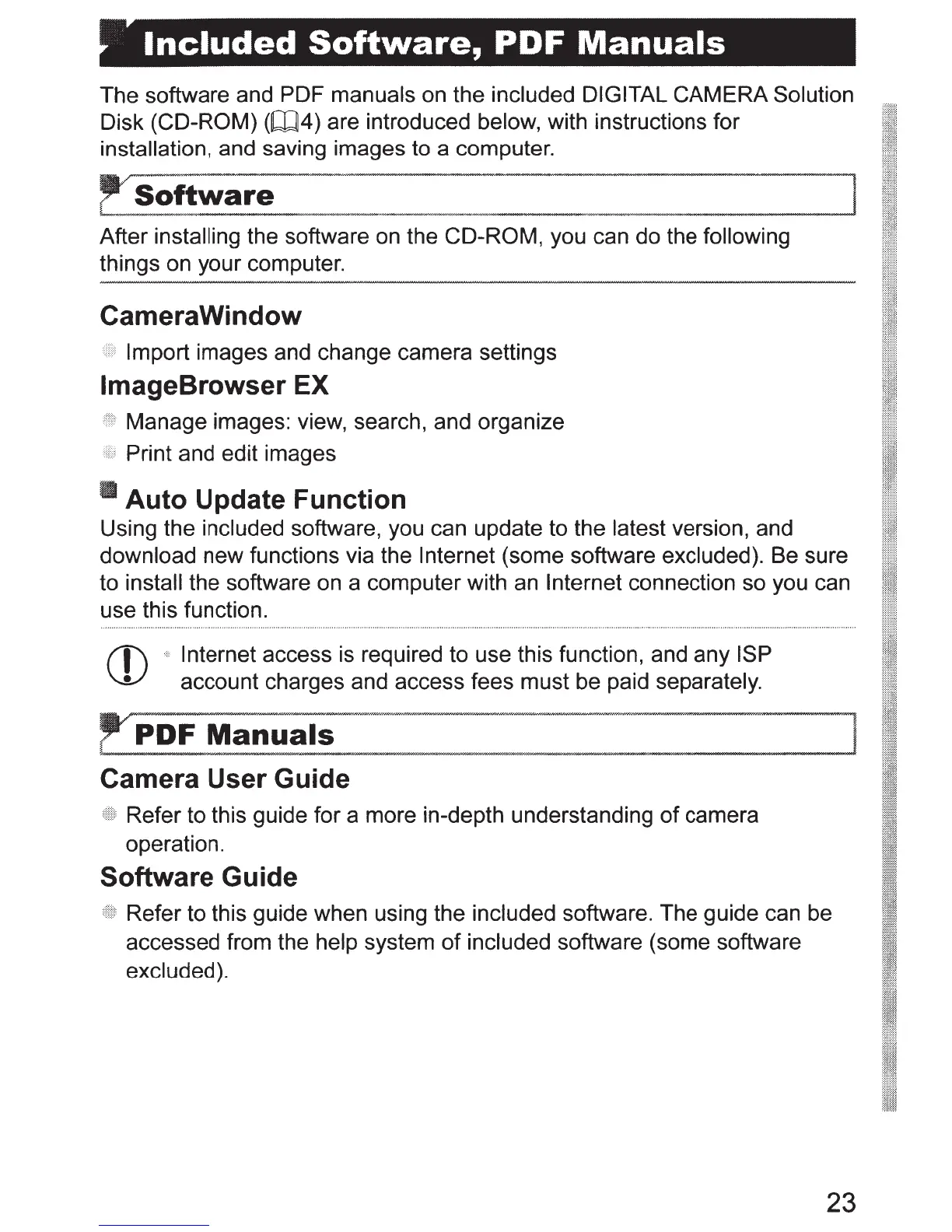 The software and PDF manuals on the included DIGITAL CAMERA Solution