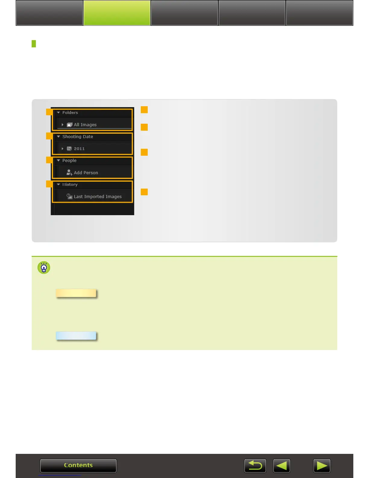 Imported images are managed on the basis of folders. To view or browse images organized by