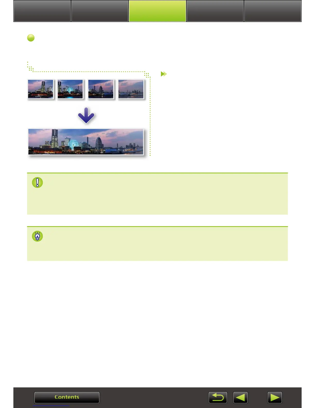 Create wide panoramic images from a series of shots taken while moving the camera slightly