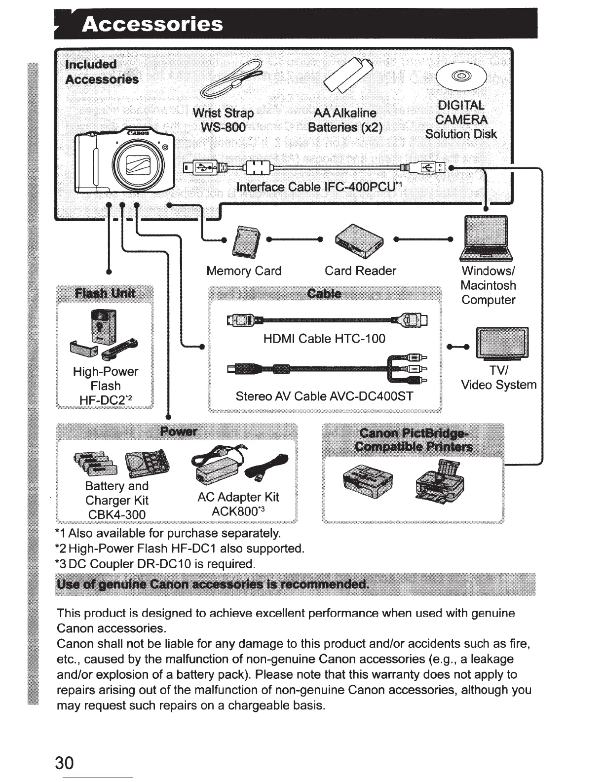 Canon shall not be liable for any damage to this product and/or accidents such as fire,