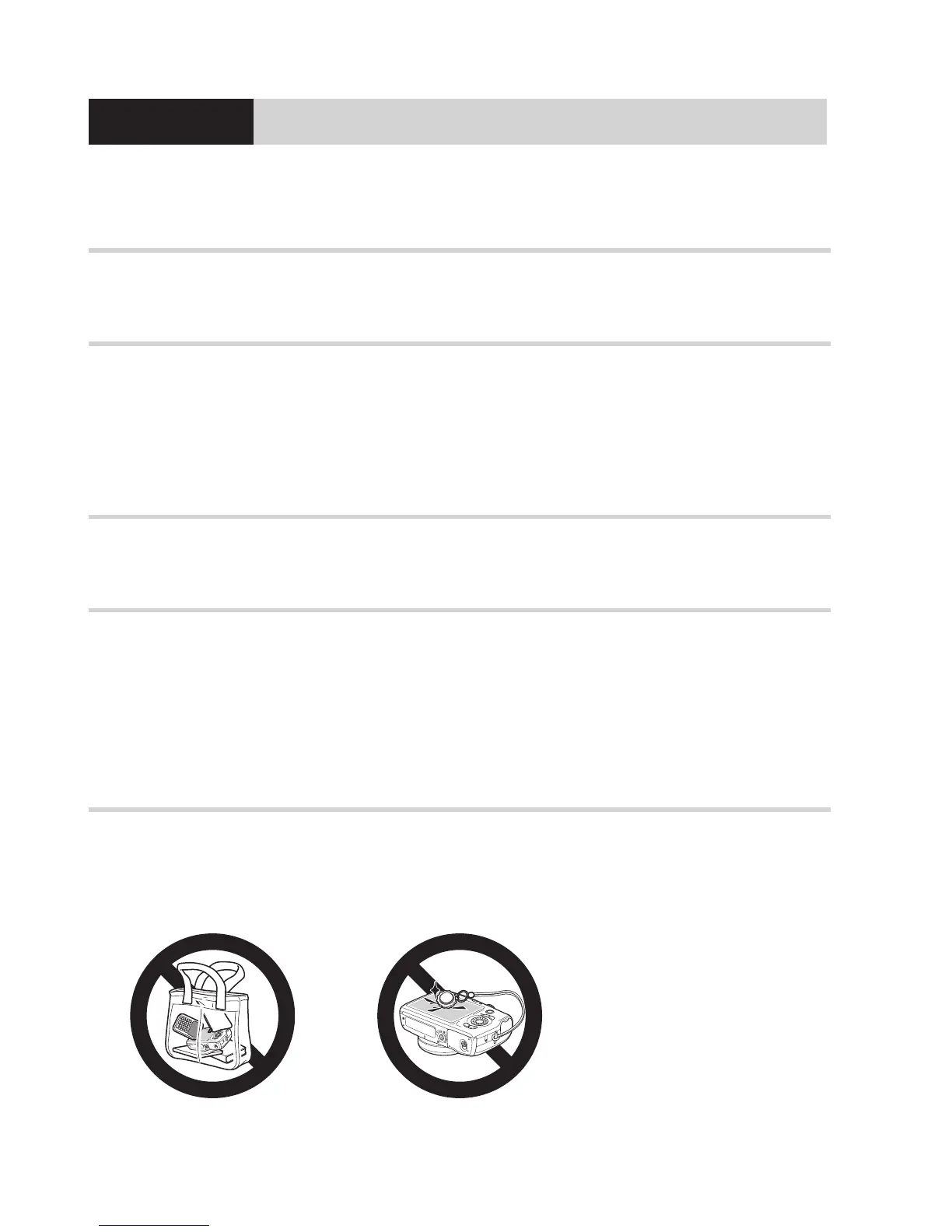 • Whenputtingthecamerainyourbag,ensurethathardobjectsdo