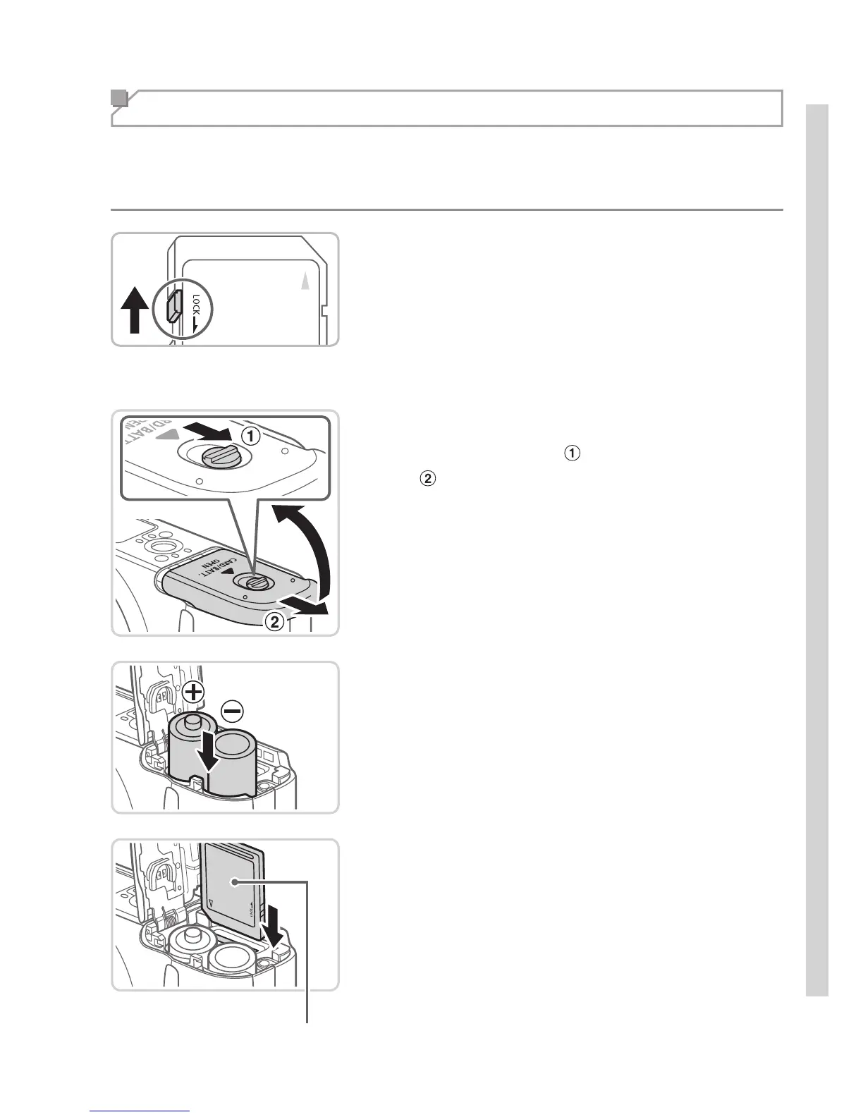 Inserttheincludedbatteriesandamemorycard(soldseparately).