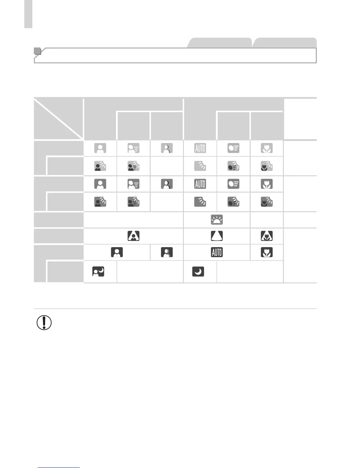 In<A>mode,shootingscenesdeterminedbythecameraareindicated
