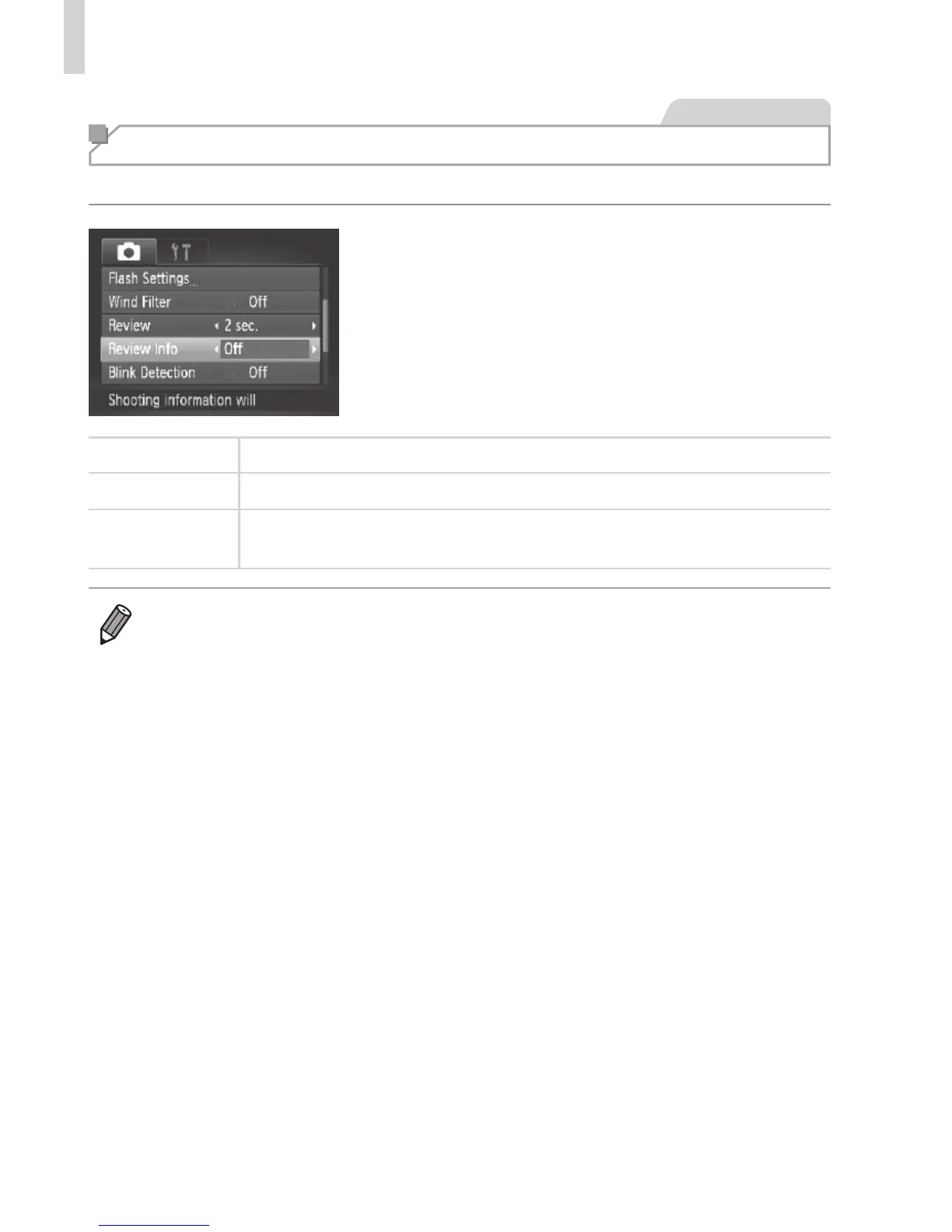 • Thissettingissetto[Off]andcannotbechangedwhen[Review](=