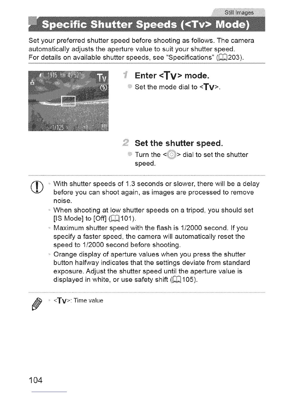 For details on available shutter speeds, see "Specifications" (_[_203).