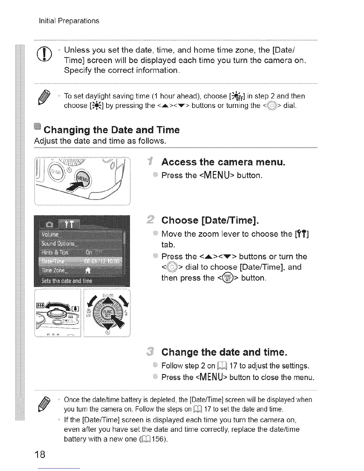 you turn the cameraon. Followthe steps on _117 to set the date and time.