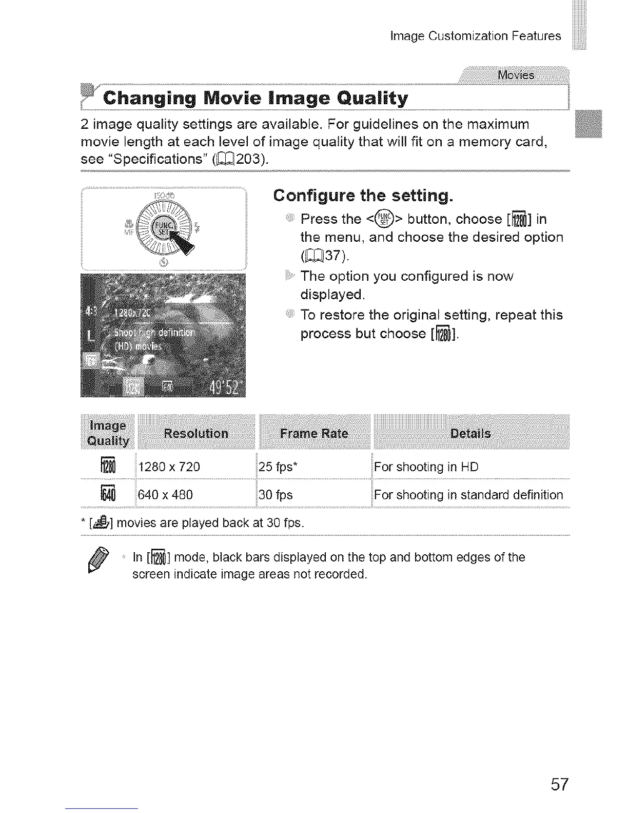 640 x 480 30 fps For shooting in standard definition
