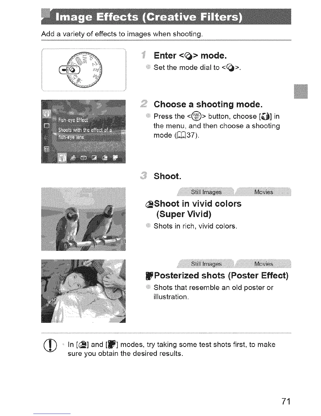 (_ In [_] and [_.] modes, try taking some test shots first, to make