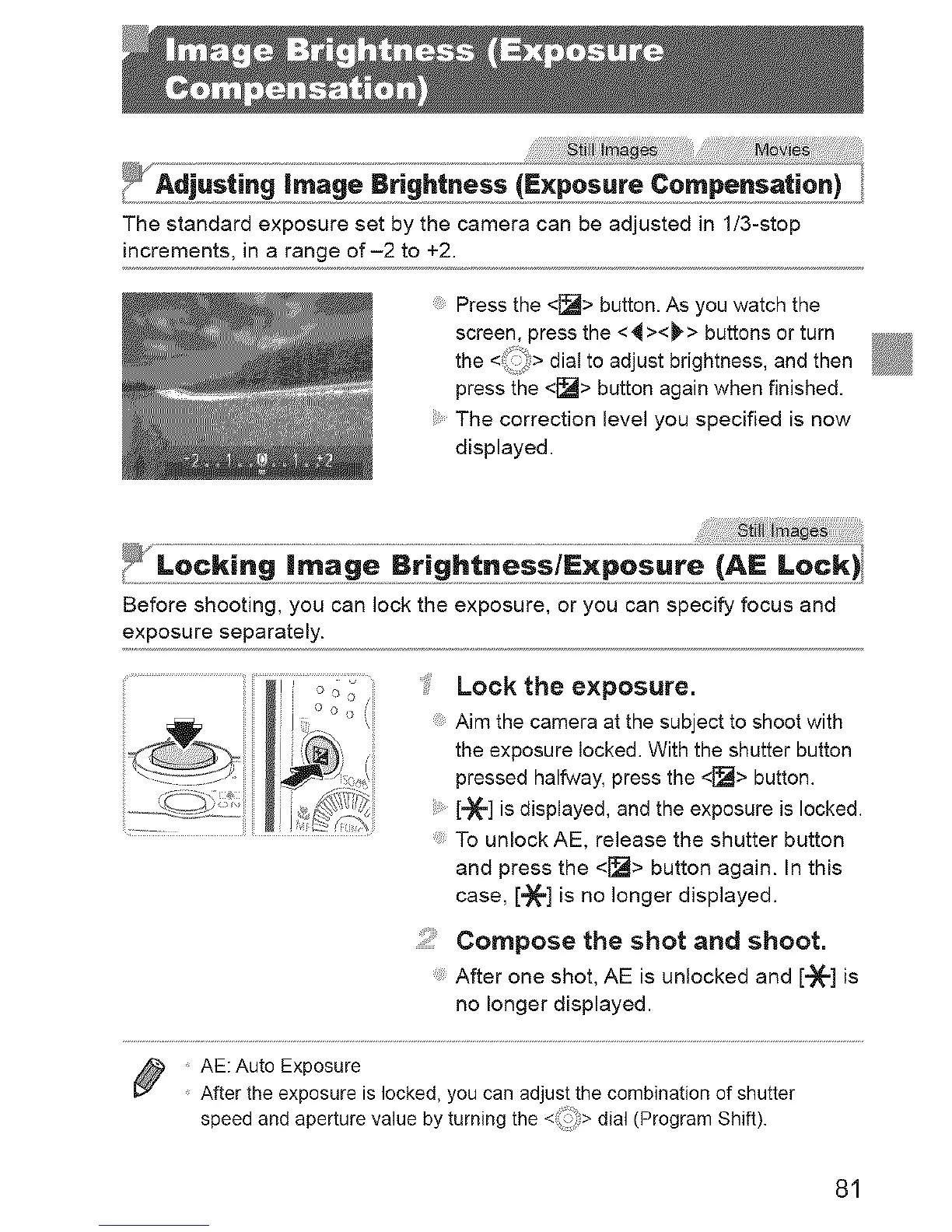 The standard exposure set by the camera can be adjusted in 1/3-stop