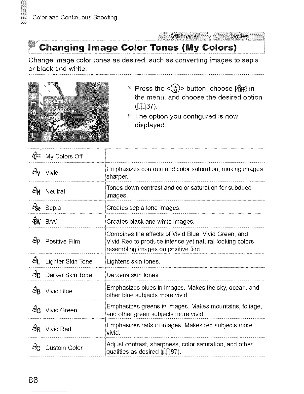 Color and Continuous Shooting
