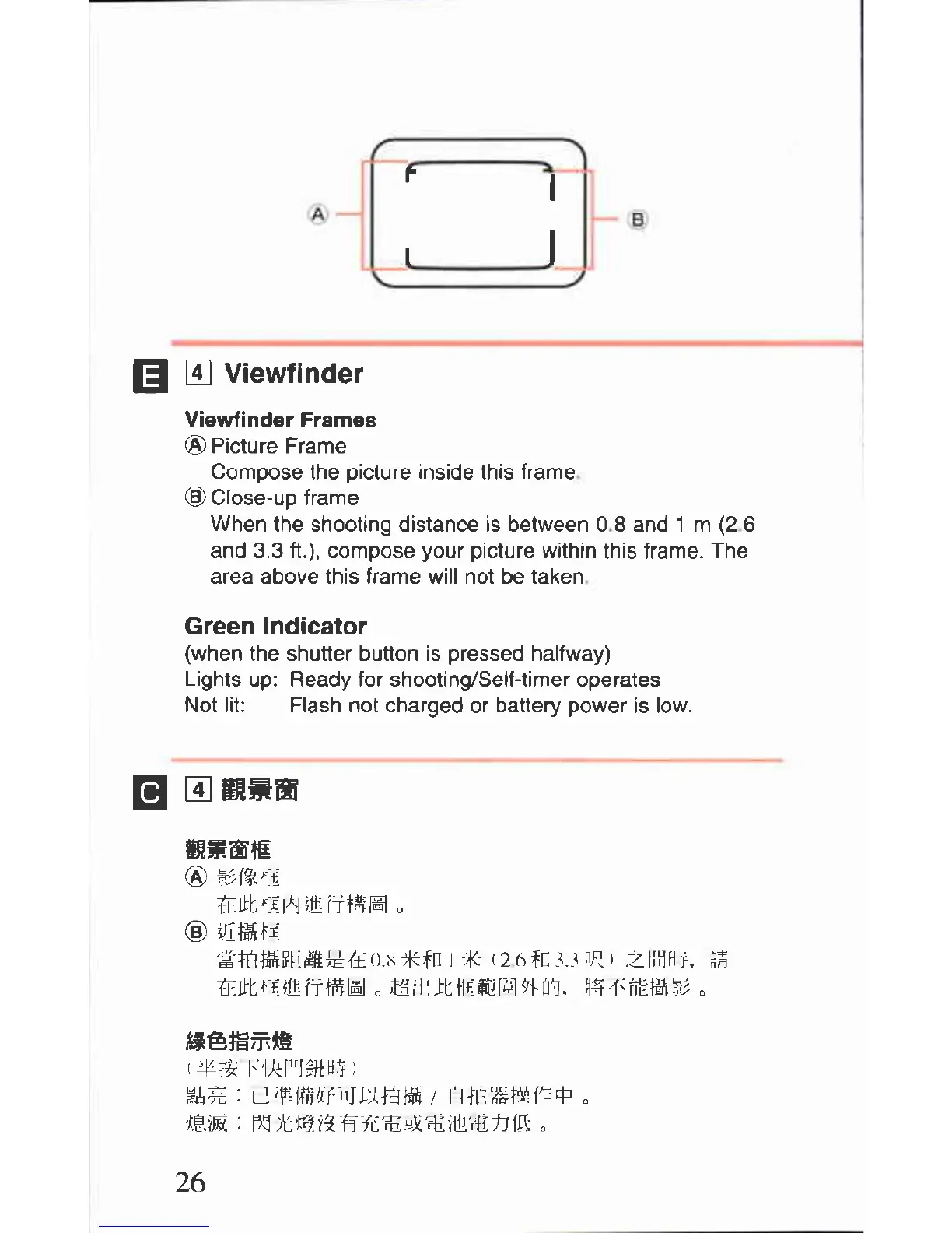 Canon Prima AF-8 Date - Viewfinder; Viewfinder Frame Types; Picture Frame; Close-up Frame