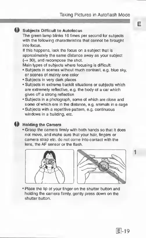Canon PRIMA SUPER 155 CAPTION - Subjects Difficult to Autofocus.19; Holding the Camera