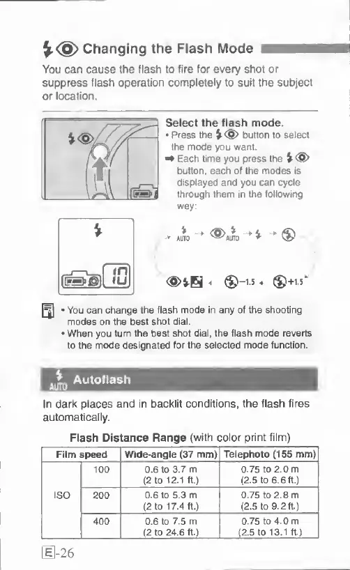Canon PRIMA SUPER 155 CAPTION - V<§> Changing the Flash Mode.26