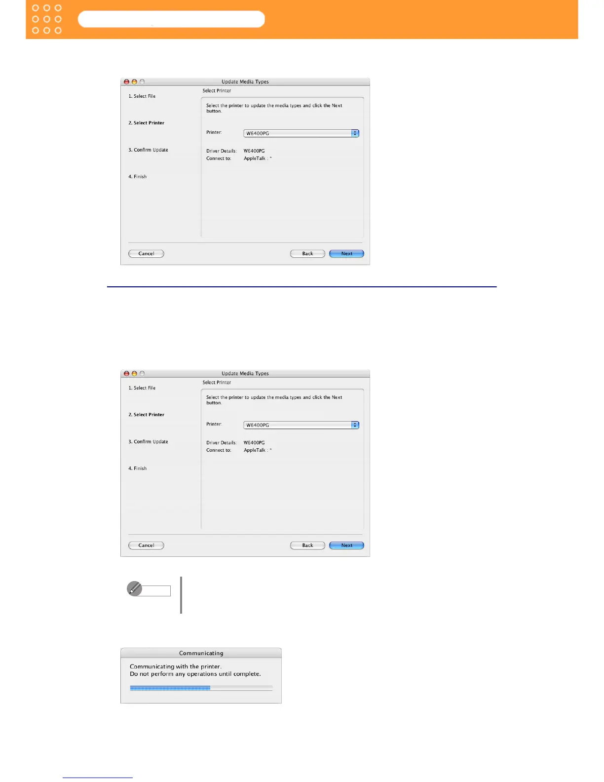 1. Confirm the printer, where media type information is to be updated, to be displayed in