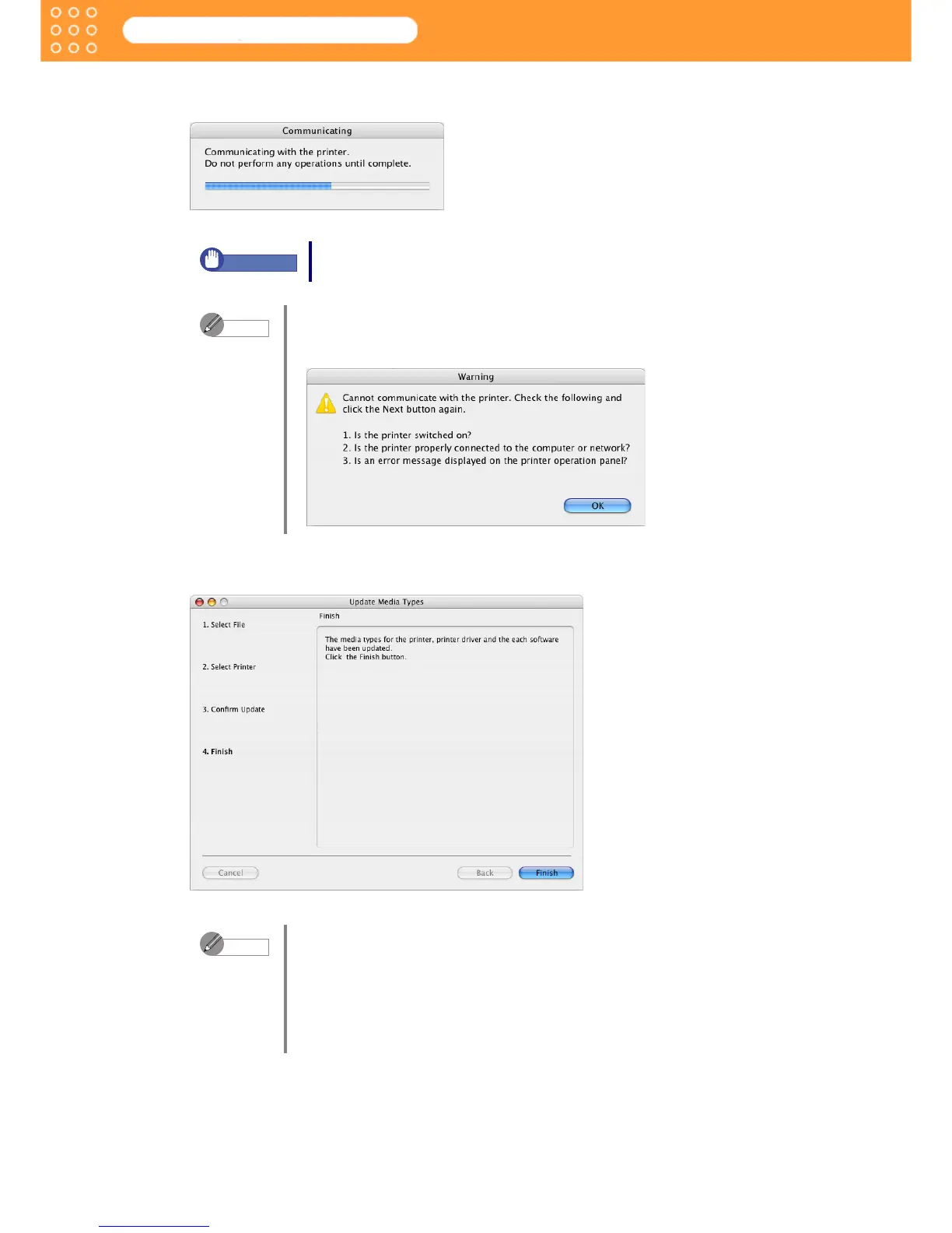 • When the program cannot communicate with the printer, the following